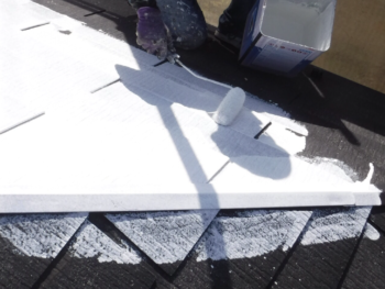 今回はスレート瓦ですので下地の強化をする為にエポキシ系塗料