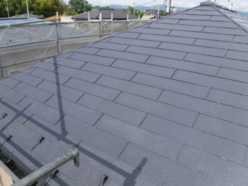この後上に重ねるスーパーシャネツサーモFと組み合わされば高い 遮熱効果を発揮してくれます!そして下の写真が後日 重ね塗り替えを二回行った屋根です!
