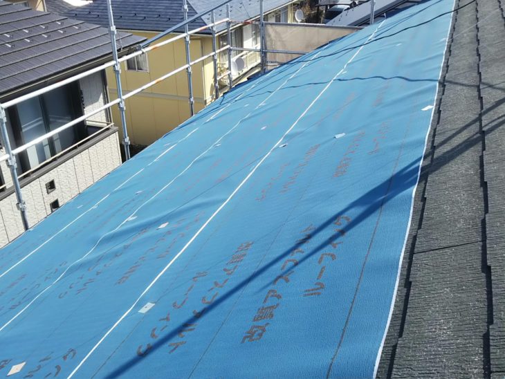 確認に伺った際はちょうど防水シートを張り上げているところでした。