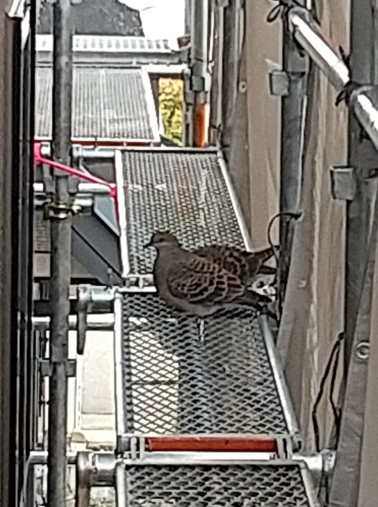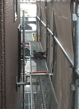 先日足場の点検で巡回していた際に、足場の上に珍しいお客様がいらっしゃいました。