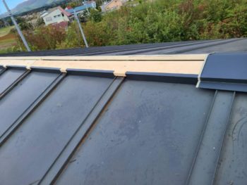 棟板金とは、屋根と屋根がくっつく一番高い部分のことです。