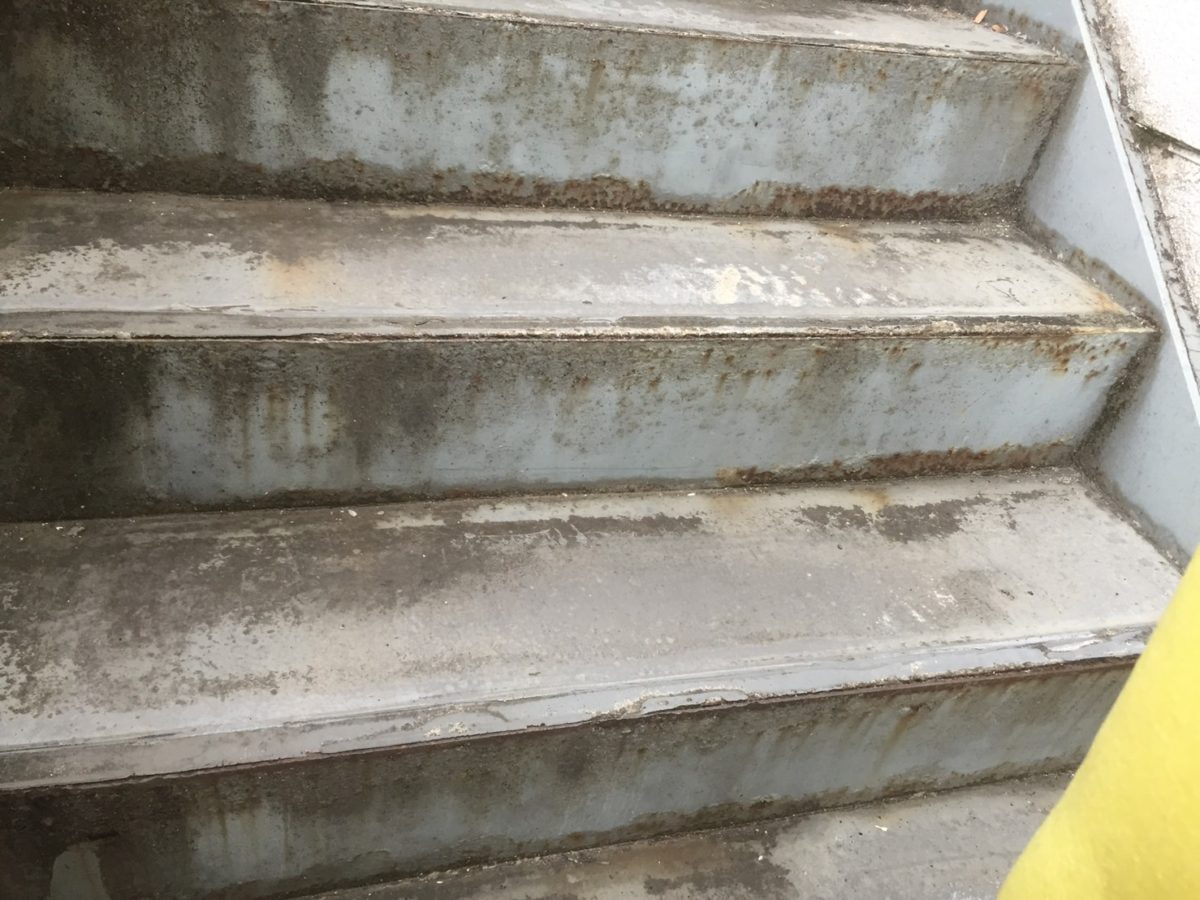階段が古くコンクリートの打ちっ放しの階段でしたが、雨が降ったり、冬の寒い時床が凍ってしまい滑って危ない状態でした。