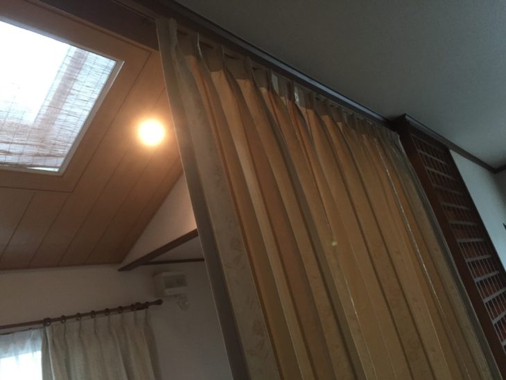 なので今回は、通常の間仕切りでドアなどを付けるのをやめ、安価に収まるカーテンで間仕切りを行うことにしました。