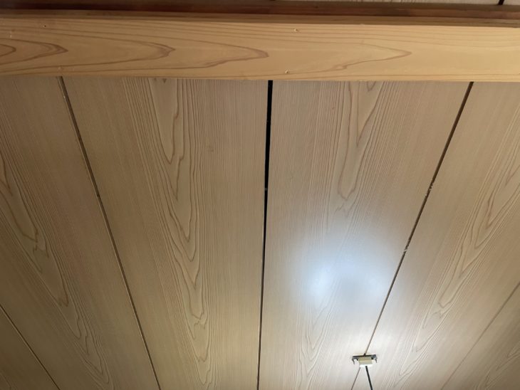 目透かし天井は板を何枚も並べたような仕上げですが、その板の目地の部分に