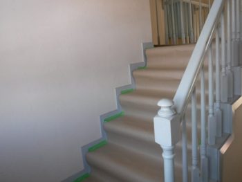 浴室は2階になります。浴室に続く廊下もしっかり養生しました。