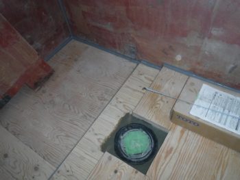 床板を新しいものに張り替えて、床用ドレンも設置しました。ドレンに向かって勾配を取りました。