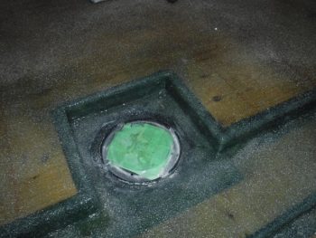 ドレン廻りはモルタルを充填して勾配を取った上にFRP防水を施工しました。