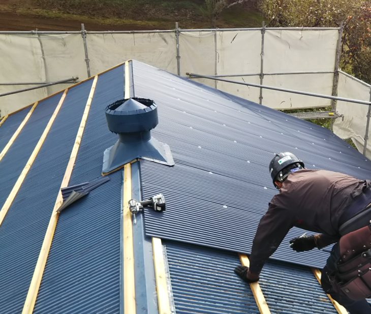 しっかりとした下地が組めたら次は屋根材を設置していきます。