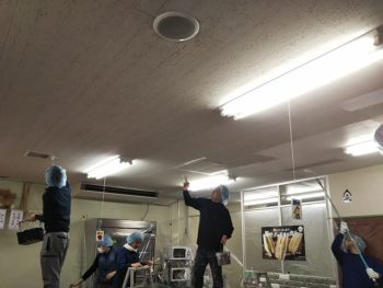 その社内の廊下や事務室、食堂の天井を塗装いたします。
