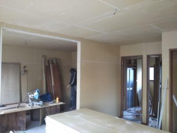 張り終わったら、ボードの継ぎ目にパテ処理を行い