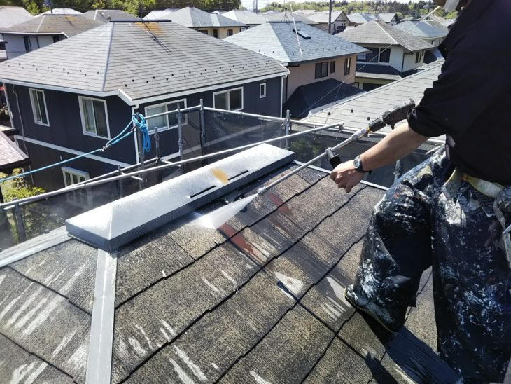 今日は屋根塗装工事で高圧洗浄をさせて頂きましたので
