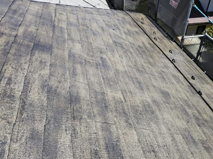 強力な高圧洗浄機で洗浄した後のスレート瓦は弱くなった塗膜がぺりぺり剥れて