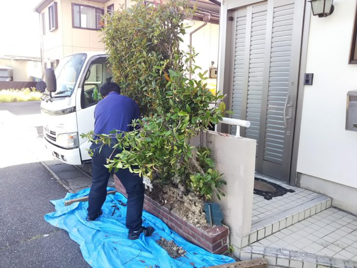 いきなりですが、生け垣を引っこ抜いております。