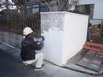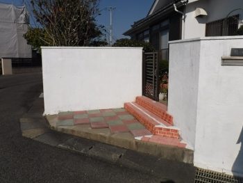 | 施工内容 | 塗装仕上の塀を塗料剥離の上リフォーム用レンガ張り |
