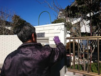 | お客様のご要望 | 「築20年経ちくすんでしまった塀を白く明るくしたいけど、塗装以外の素材でいい材料があれば試してみたいのだが・・・」と、ご相談が有りました。 |