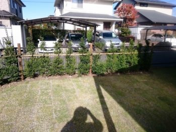 生垣も一年後にはもう少し背も高くなって程よい高さになるでしょう。