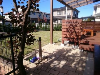 外水栓の周りもインターロッキングを敷いたので、お子様の水遊びでの泥撥ねもなさそうです。
